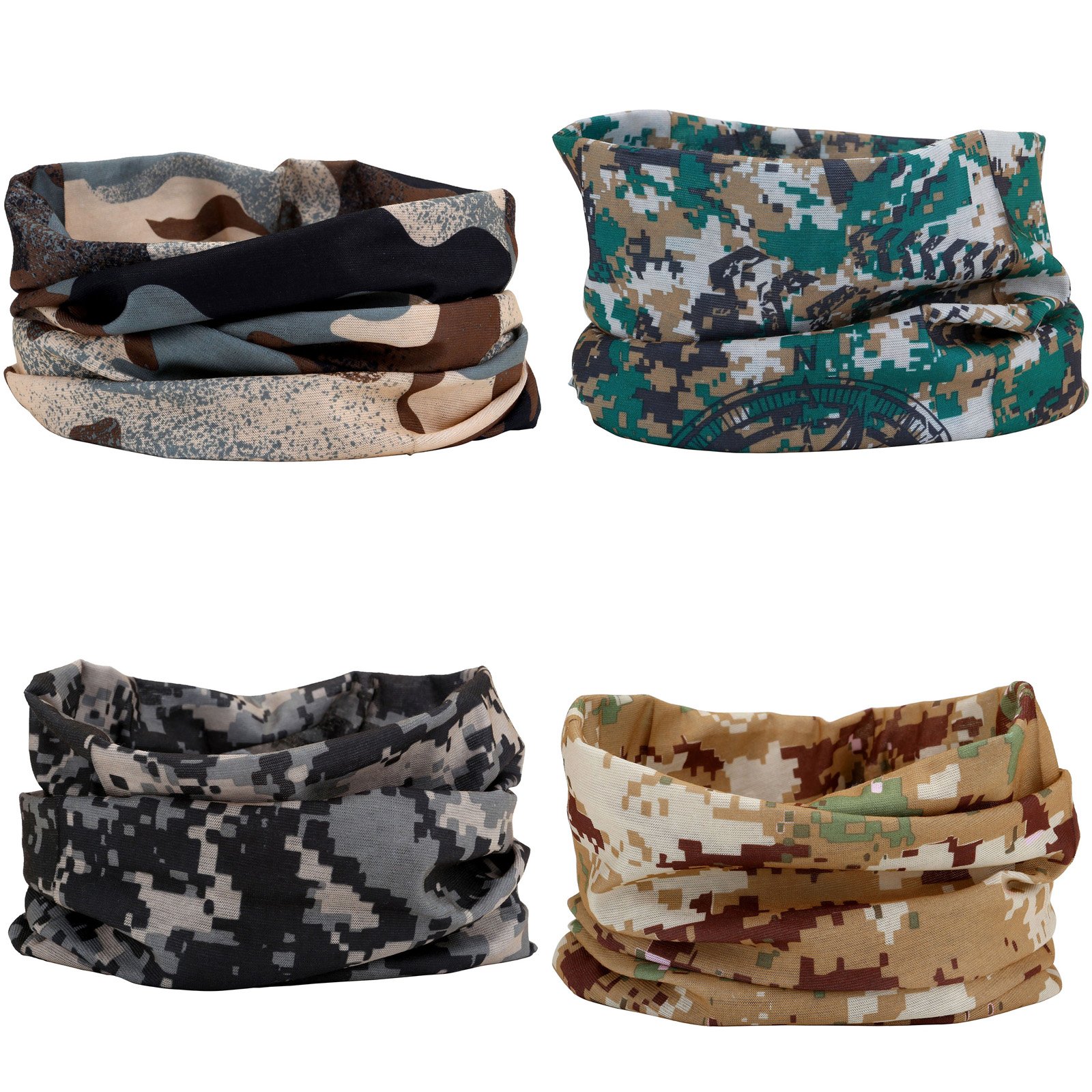 Camouflage Bandana 4pcs Made from 100% high quality polyester. Seamless and egde No Serging, comfort…