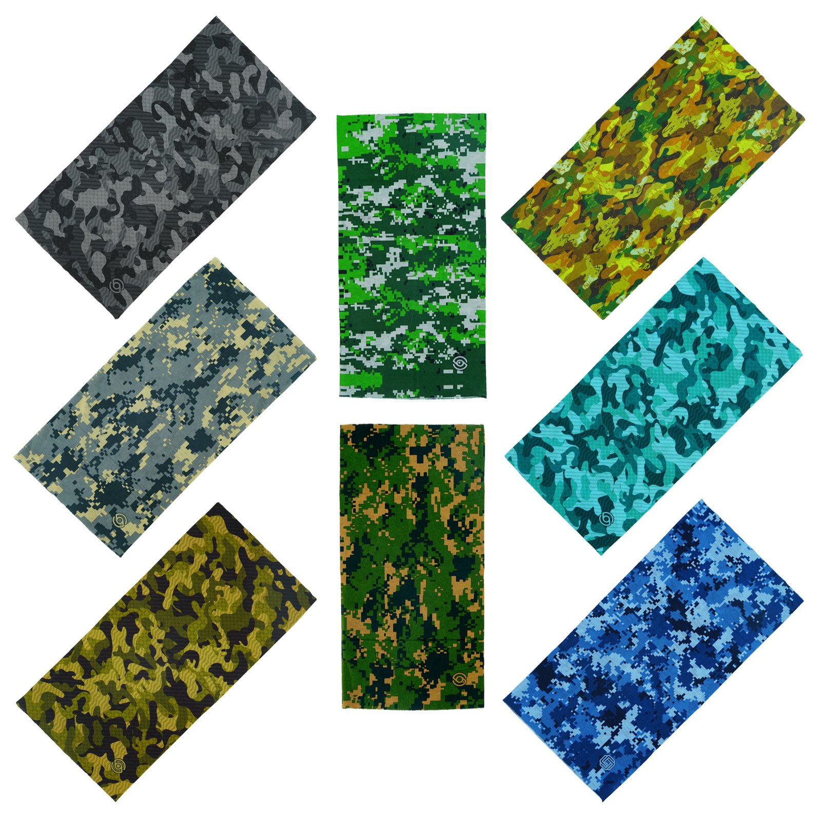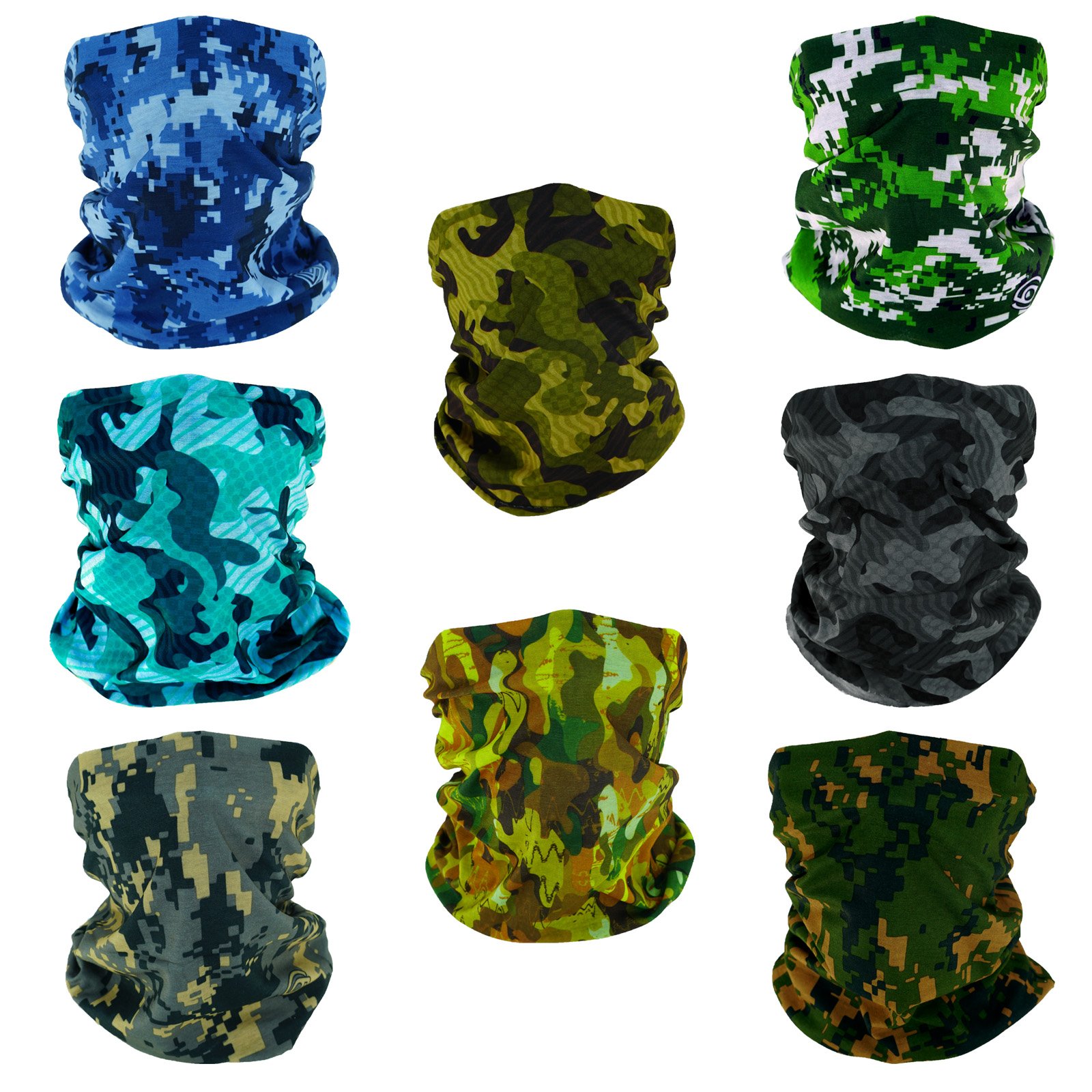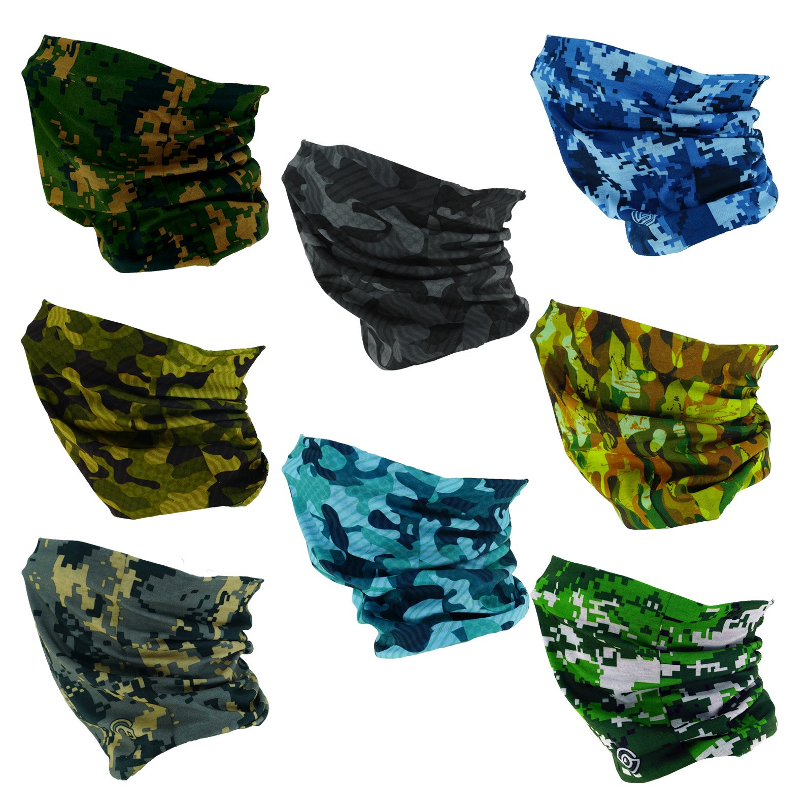 Camouflage Bandana 8pcs Made from 100% high quality polyester. Seamless and egde No Serging, comfort…